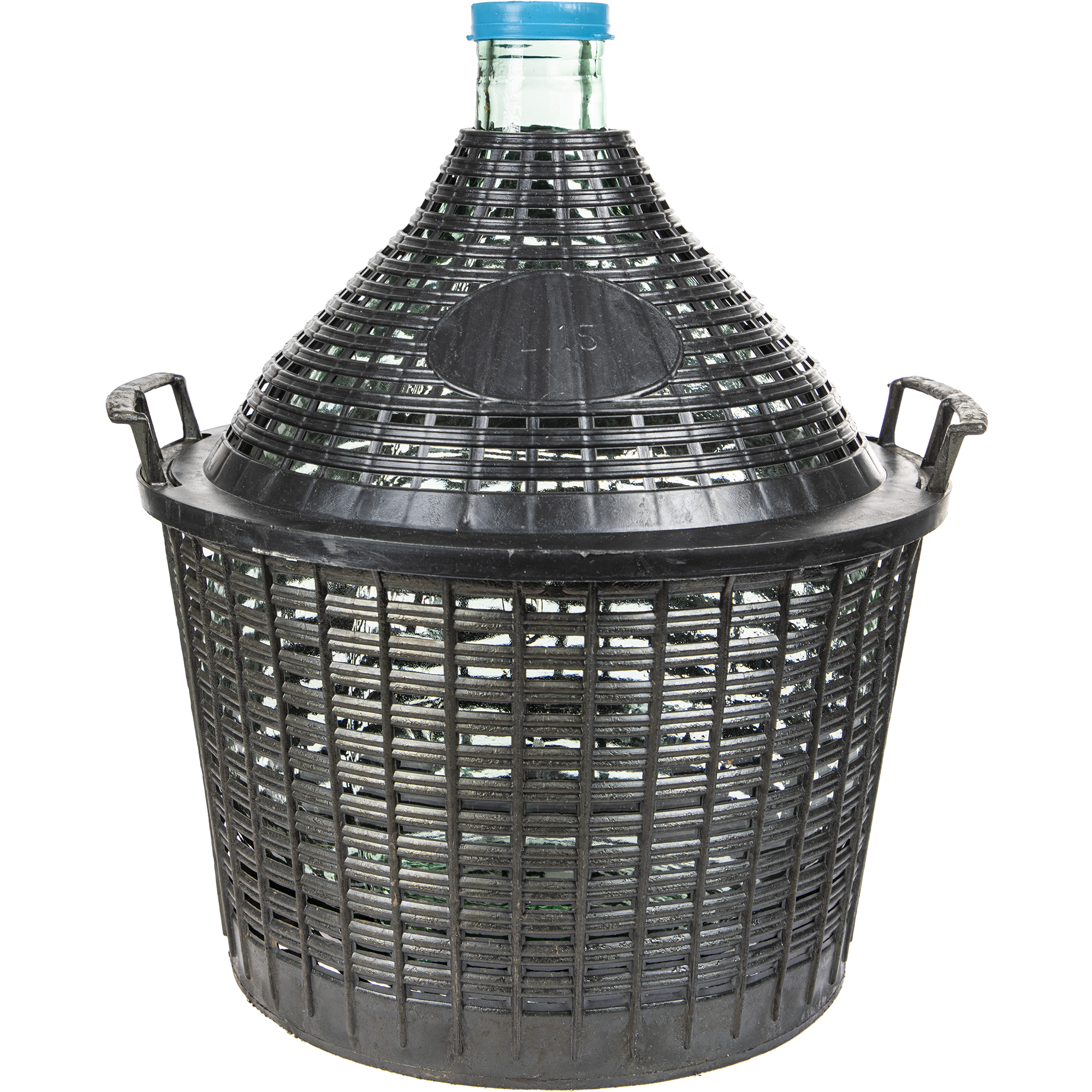 balon do wina 15 L w wytrzymałym koszu plastikowym,